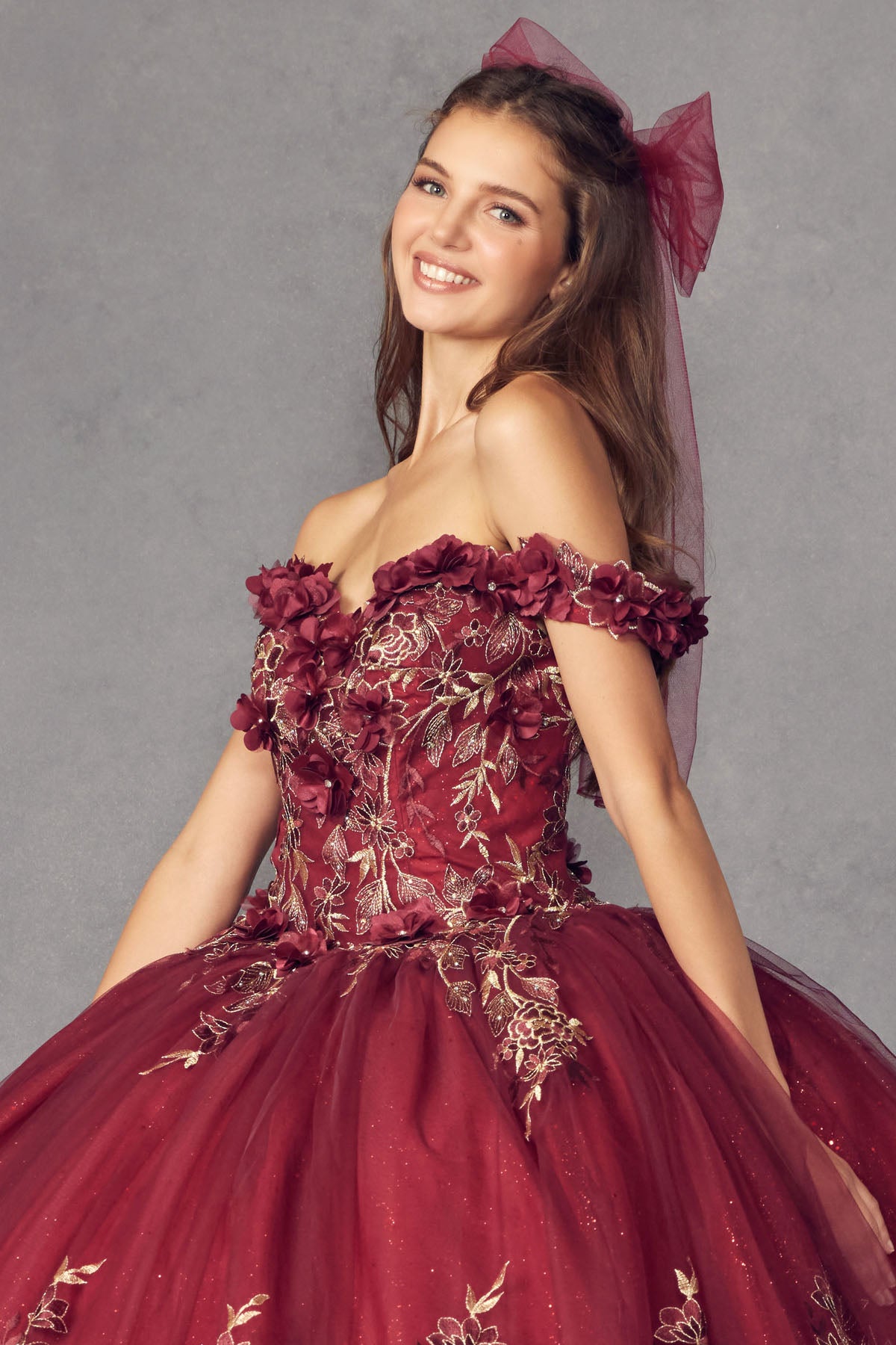 Experience unparalleled elegance with the 3D Butterfly Applique Sweetheart Off-Shoulder Long Quinceanera Dress, model JT1447. This exquisite ball gown features delicate butterfly appliques on the bodice, creating a stunning 3D effect that adds dimension and charm to your look. The sweetheart neckline and open back make this dress both flattering and trendy, perfect for making a memorable entrance.