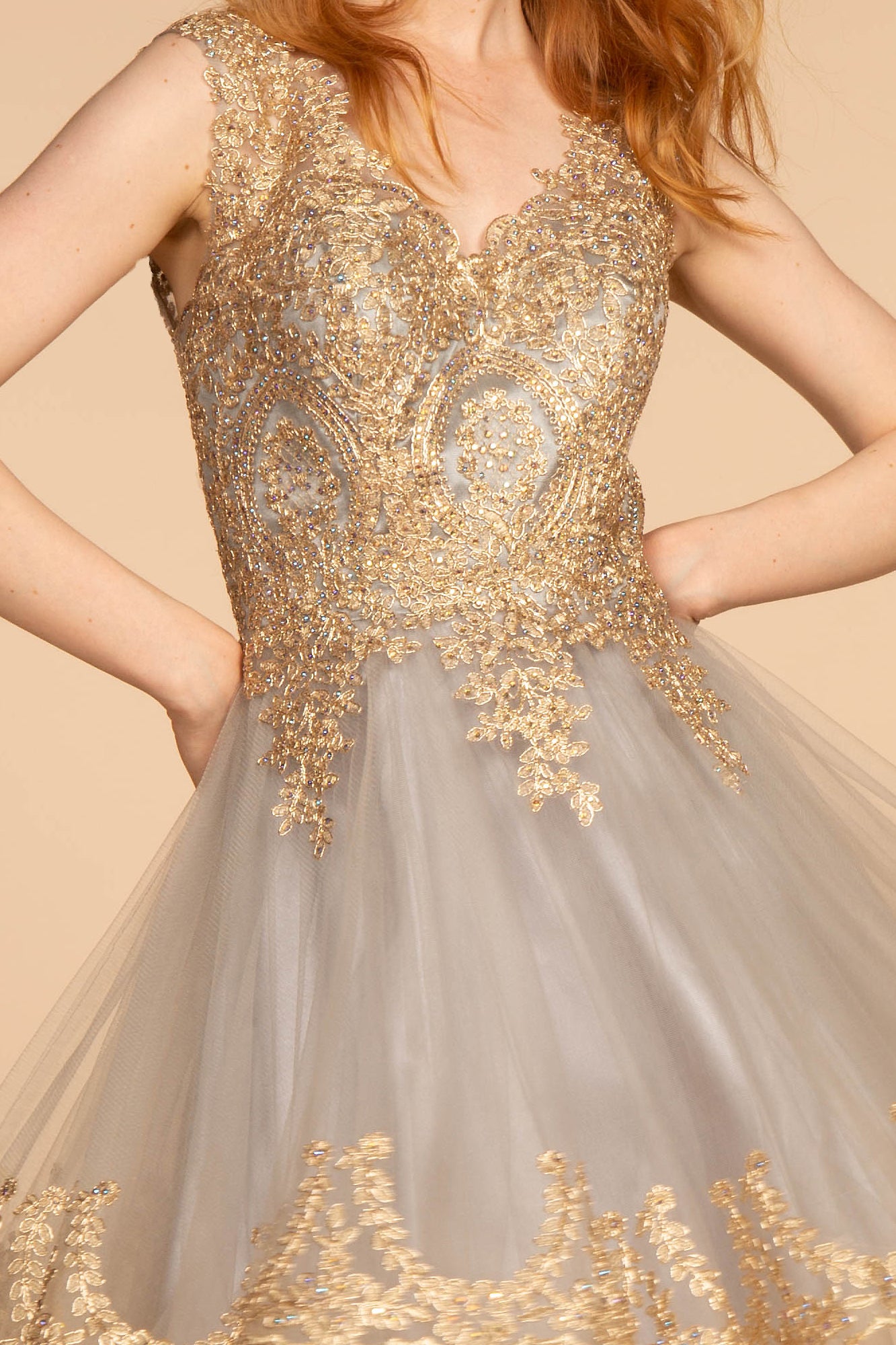Tulle Short Dress Accented with Gold Lace GLGS2403