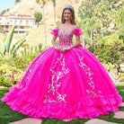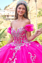 3d butterfly applique off shoulder puff sleeves v neckline ball gown train with detachable bow GLGL3709