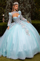 Ice Blue Quinceañera Ball Gown with Corset Bodice and Sheer Sleeves