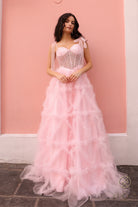 A-Line Adjustable Straps Ruffle Skirt Dress