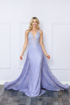 Deep V-Neck Embroidered Dress with Detachable Train NXG1353