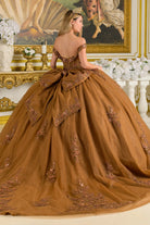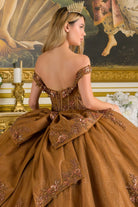 Embellished fold over off shoulder corset bodice train ball gown with detachable back bow GLGL3811
