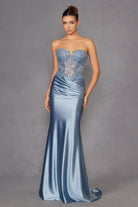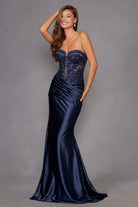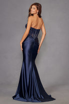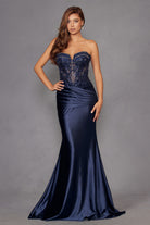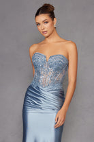 Satin Mermaid Gown with Beaded Corset Bodice & Sweetheart Neckline jt2530k