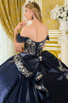 Pleated off shoulder straps glitter mesh bodice satin skirt gown with detachable satin tails bow GLGL3792