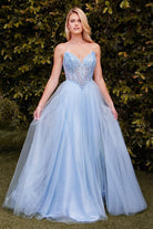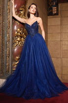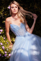 Strapless Neckline Beaded Detail Fitted Lace-Up Corset Gown