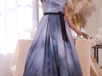 Step into timeless elegance with this Midnight Blue Off-Shoulder Printed Ball Gown. Featuring a luxurious satin-like finish with a dreamy abstract floral print, this gown is perfect for formal events and galas. The romantic off-shoulder neckline wraps into a fitted bodice, while the full skirt flows gracefully for a dramatic silhouette. A velvet ribbon belt adds definition and a touch of sophistication. Make a statement with this artistic and refined look.
