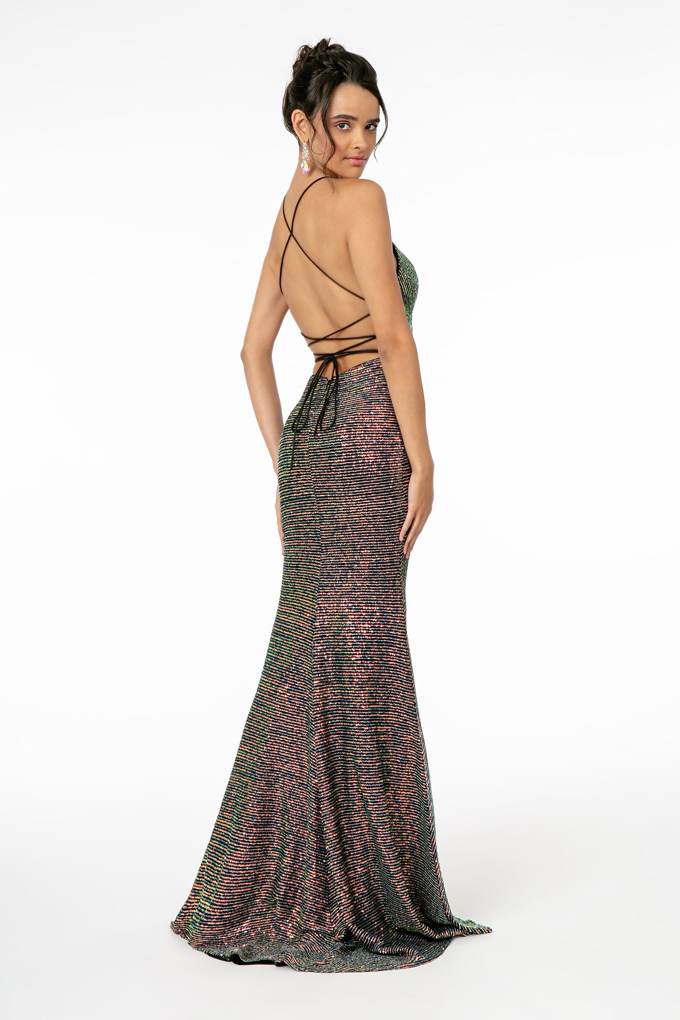 Sequin Fitted Dress Lace Up Back and Leg Slit GLGL1812