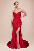 Unleash your inner fire in the Siren Side-Slit Gown. This captivating red dress features a ruched, fitted bodice that flows into a dramatic skirt with a high side slit. The one-shoulder design adds a modern, asymmetrical touch, making it an unforgettable choice. Perfect for making a grand entrance at black-tie events, cocktail parties, and red carpet affairs.
