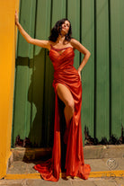 Pleated Satin Fitted Strapless Dress