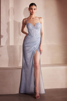 Shimmering Sweetheart Corset Gown with Slit CDT707