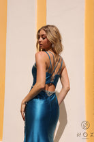 Introducing our breath-taking satin glittery gown with exquisite gemstone details. With its luxurious satin fabric, the dress shimmers and sparkles with every movement. One of the standout features of this dress is the slit that includes a gem detail on top. Additionally, the elegant lace-up detail on the back of the dress enhances its feminine and sophisticated appeal.