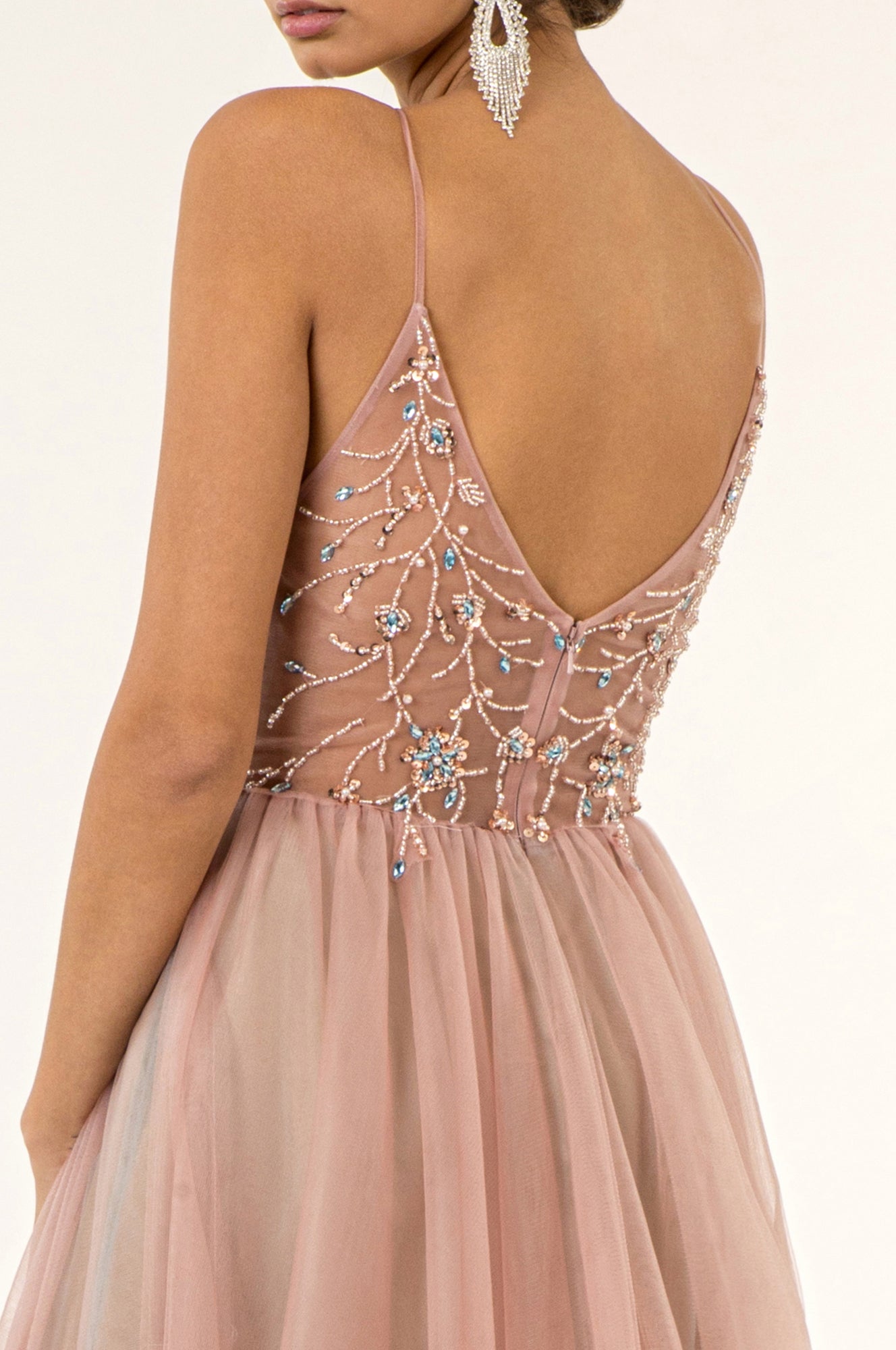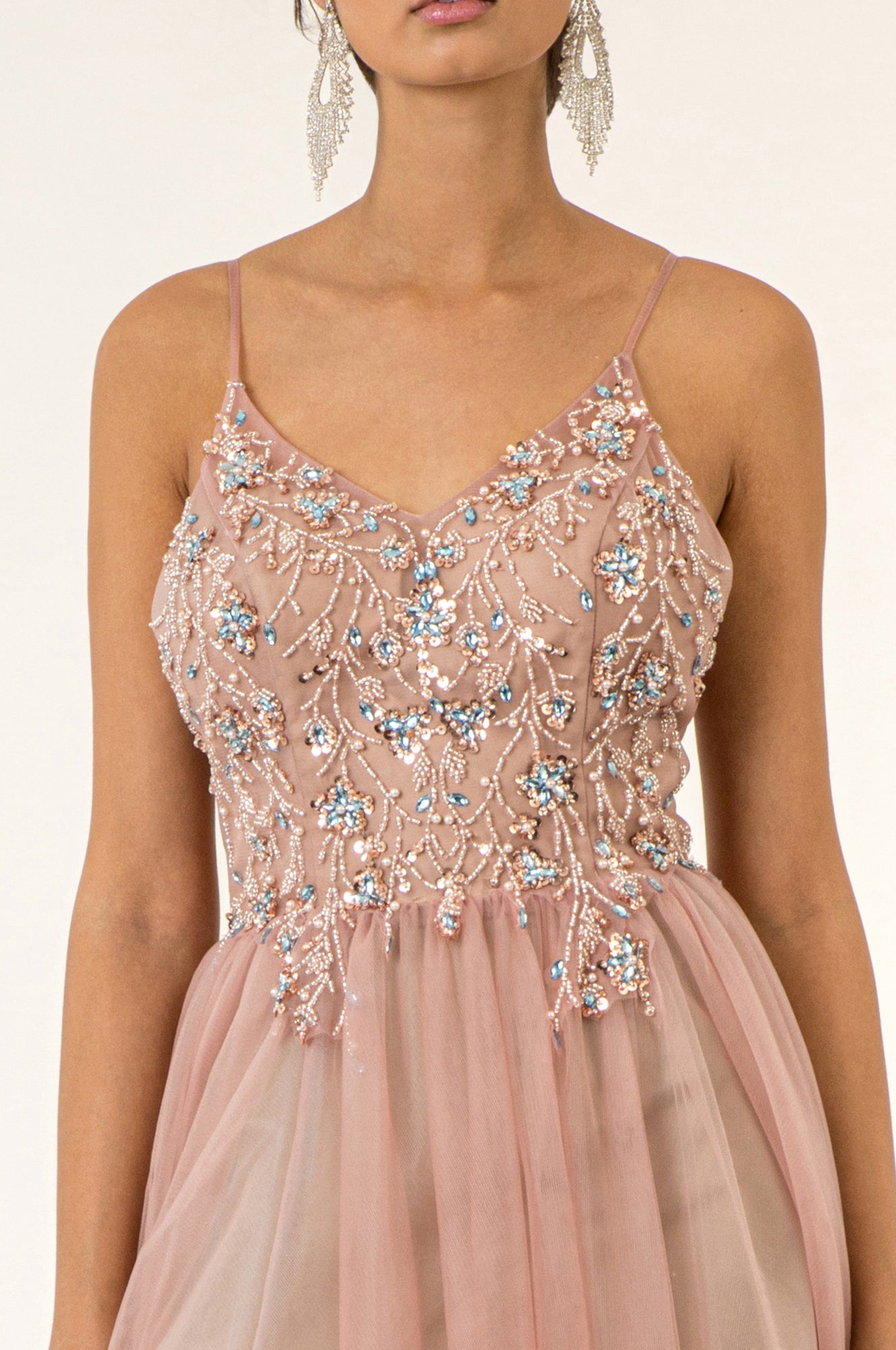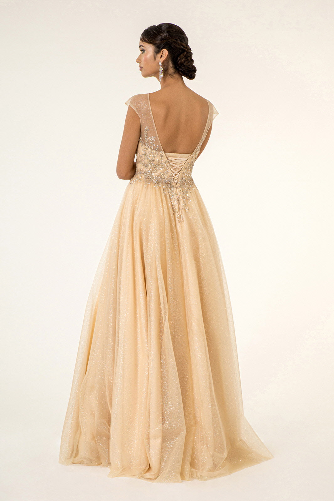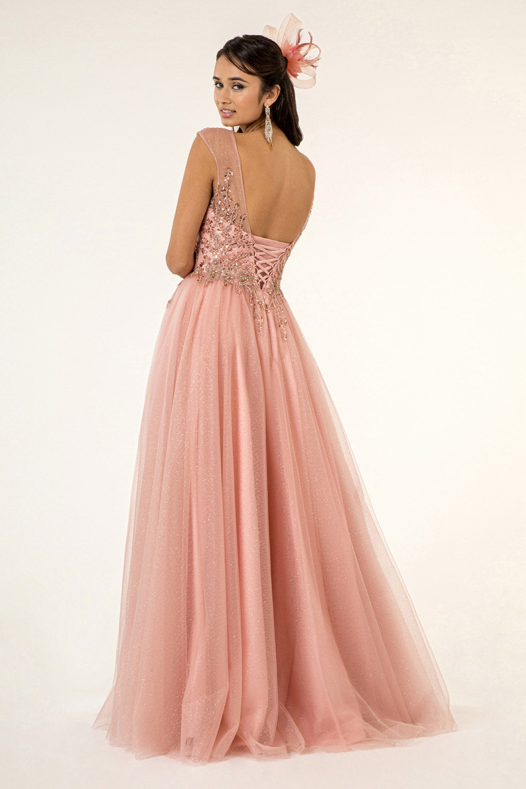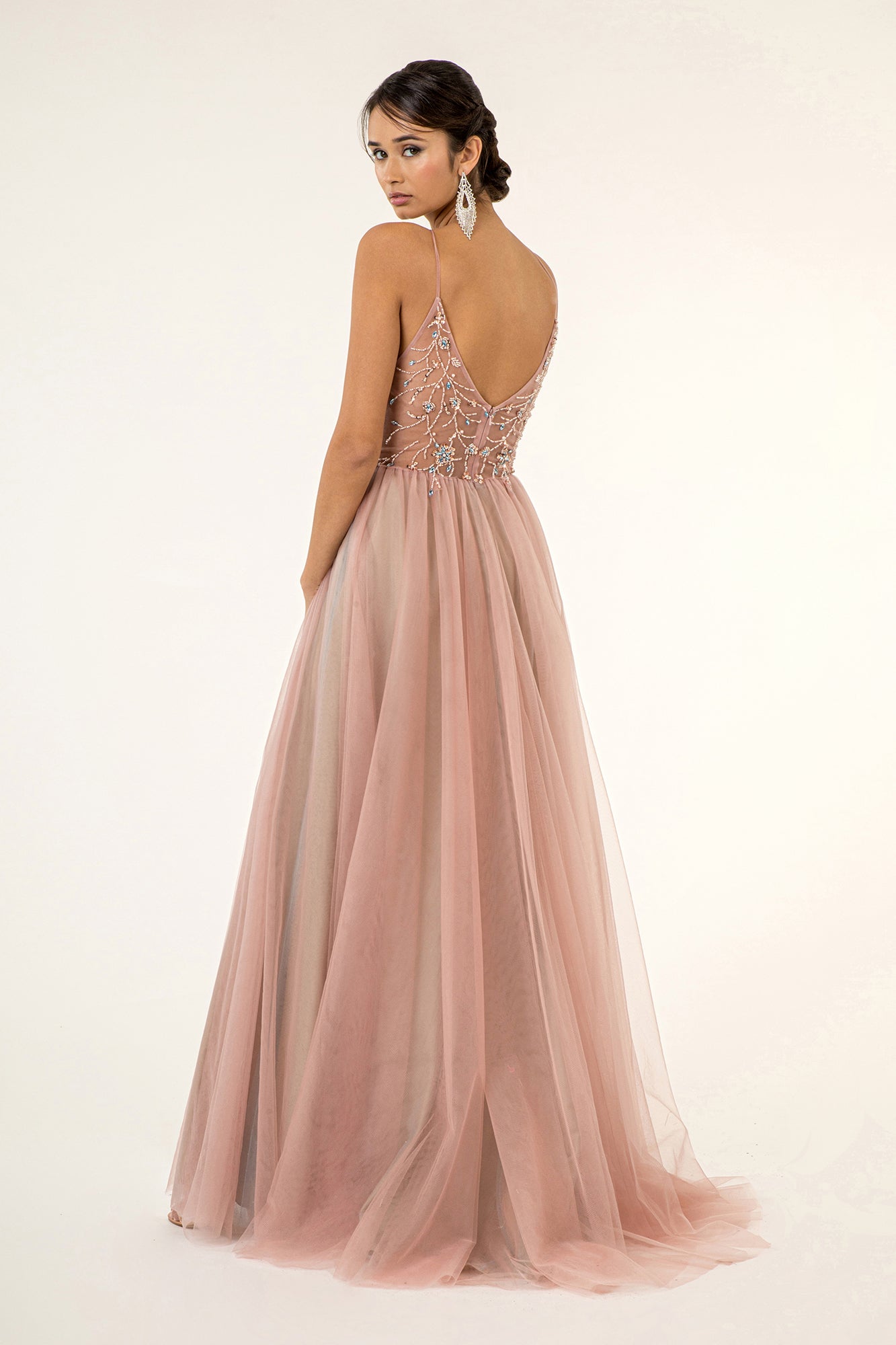 Beads Embellished Bodice Long Dress with Sheer Back GLGL2303