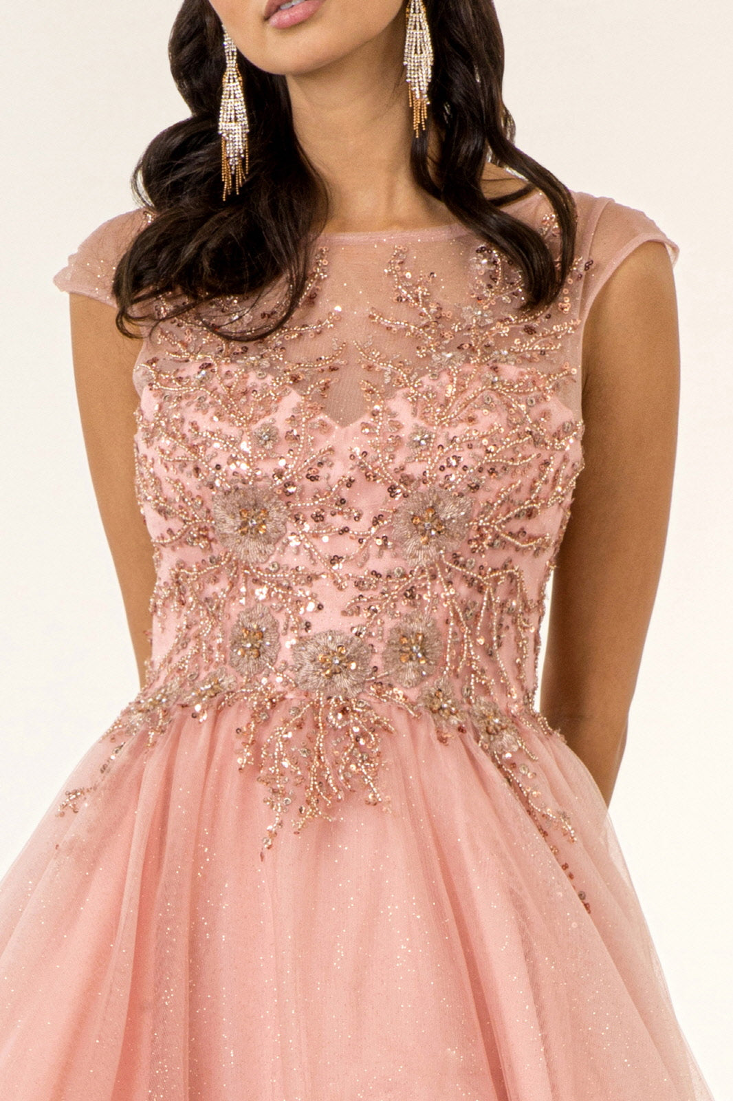 Beads and Sequin Embellished Bodice Boat Neck Ball Gown GLGL2514