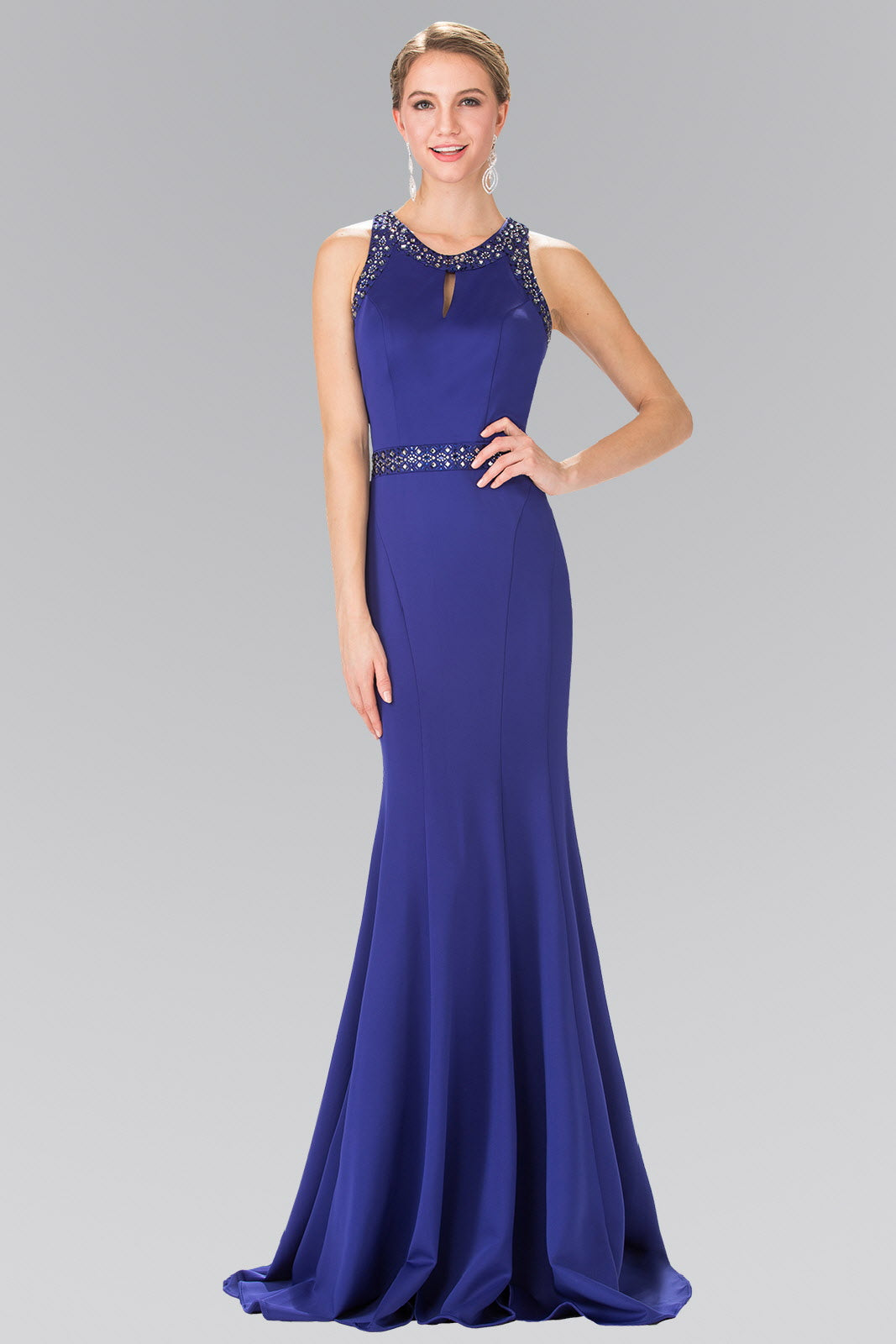 Beaded Waist Line Jersey Long Dress with Cut-Out Back GLGL2306