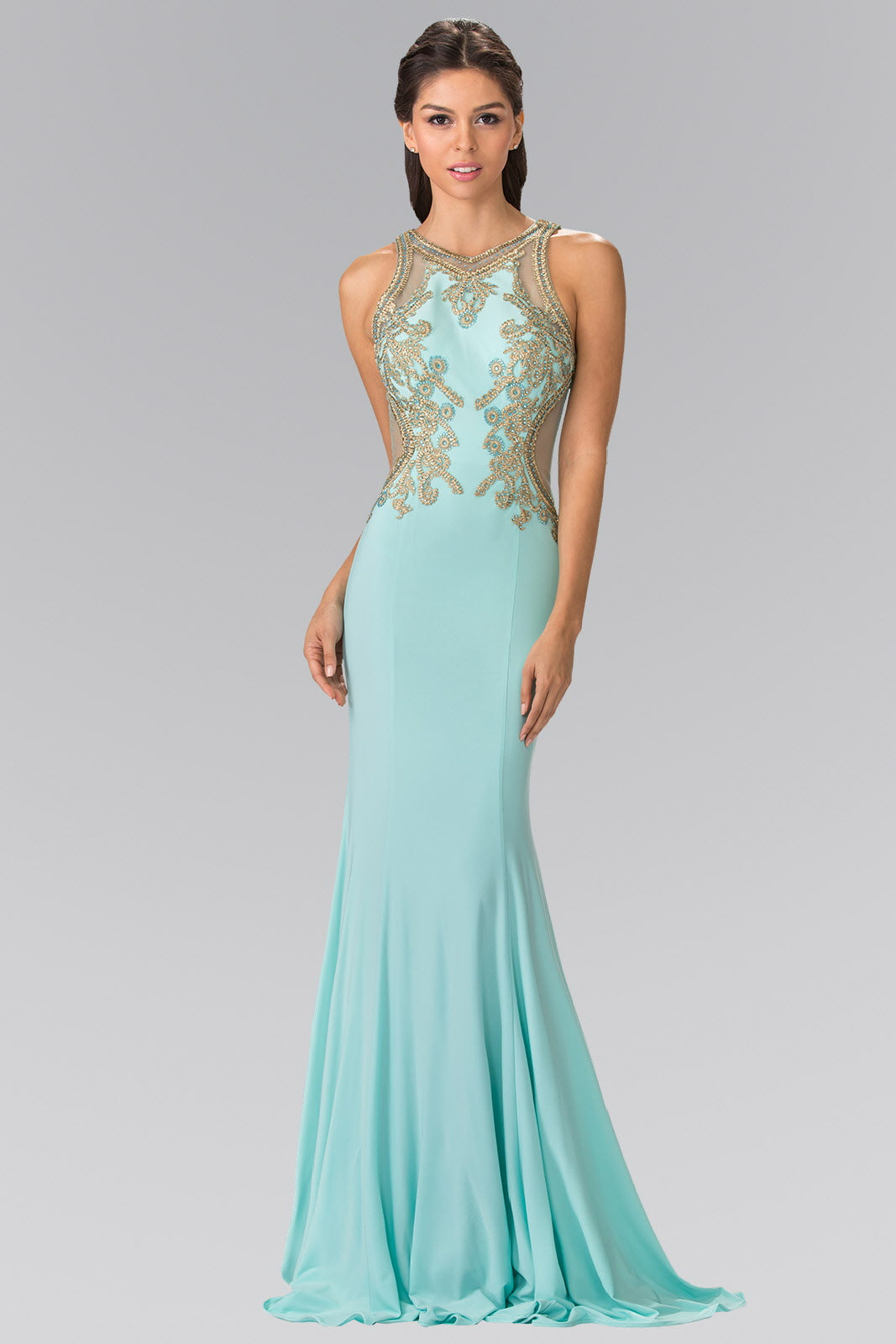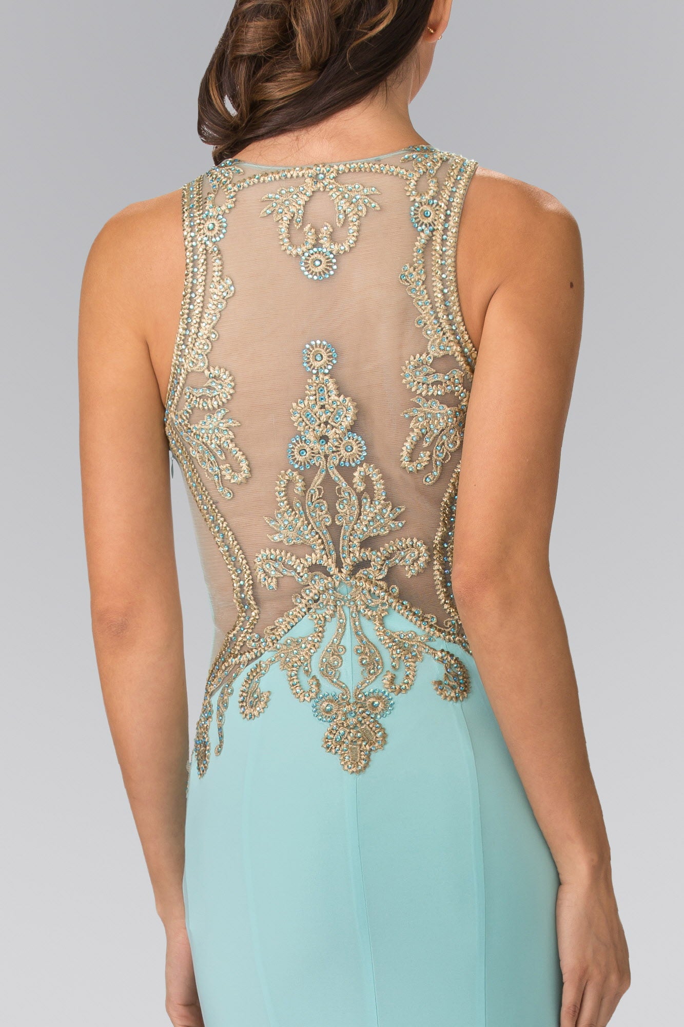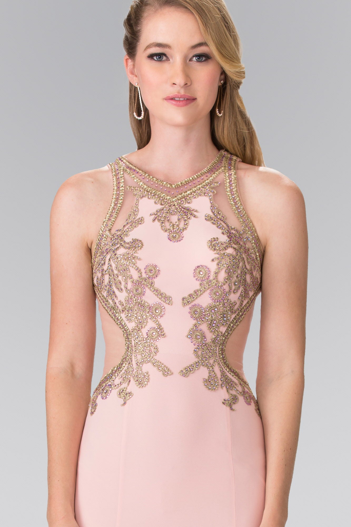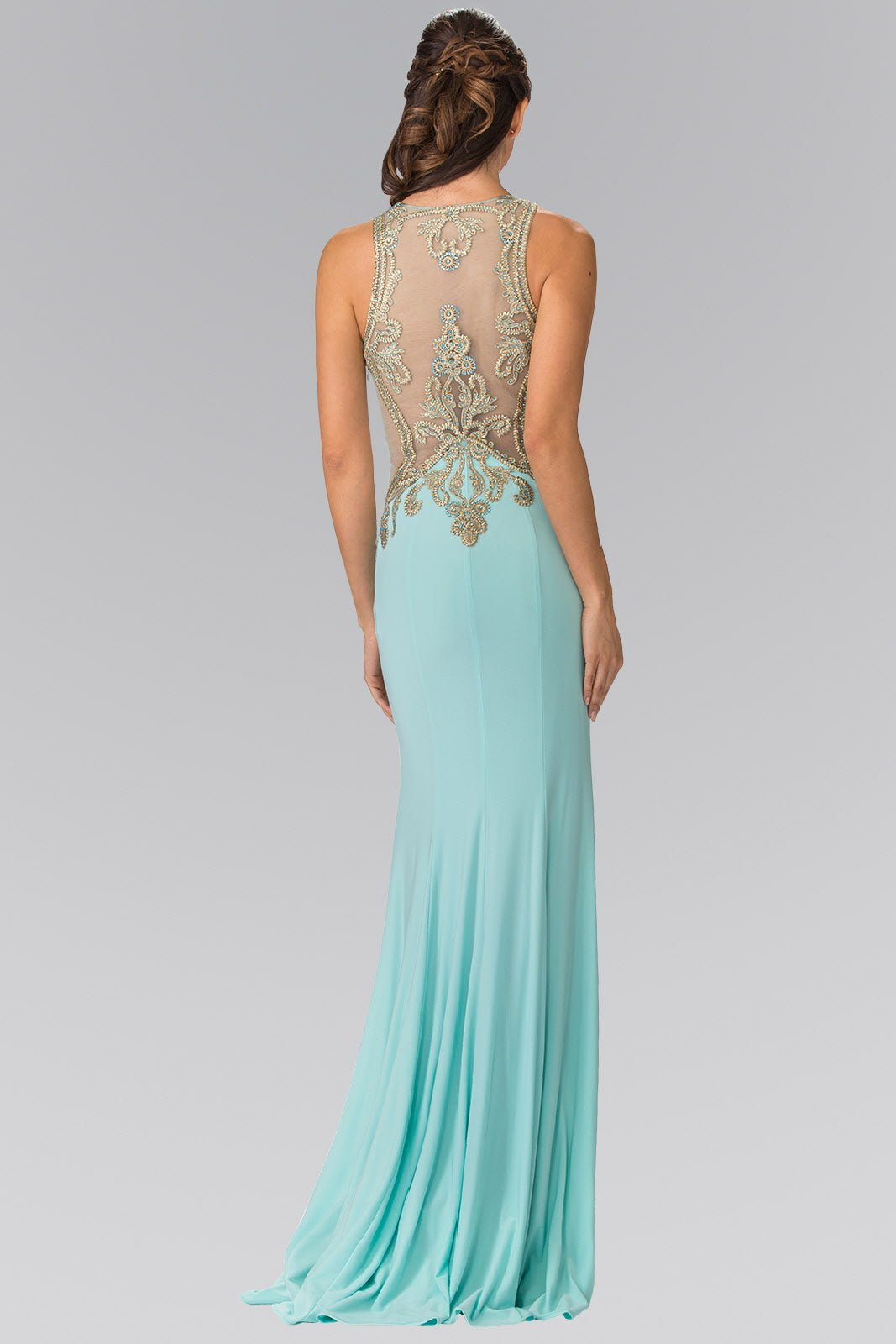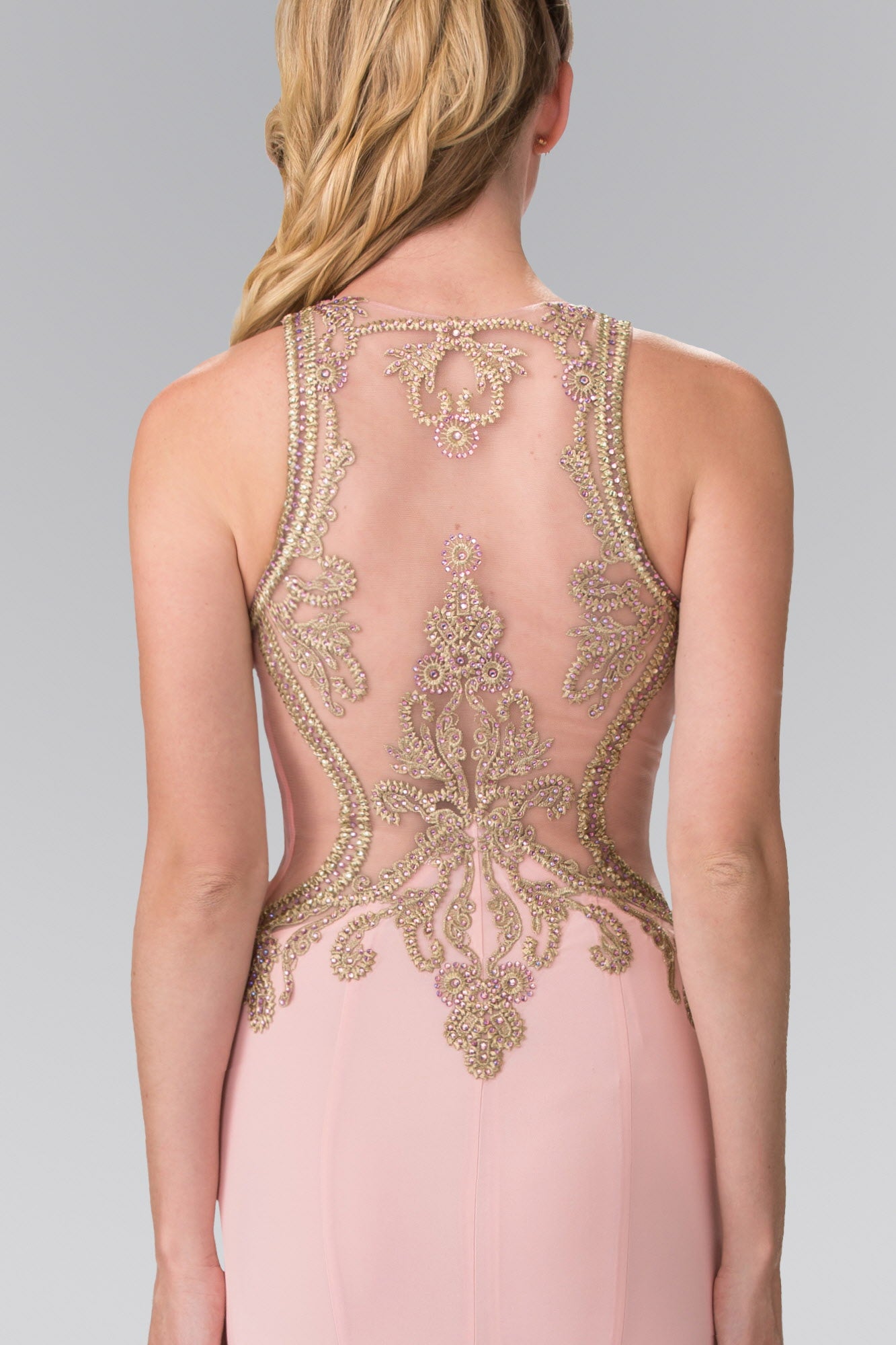 Beading and Embroidery Jersey Long Dress with Sheer Back GLGL2321
