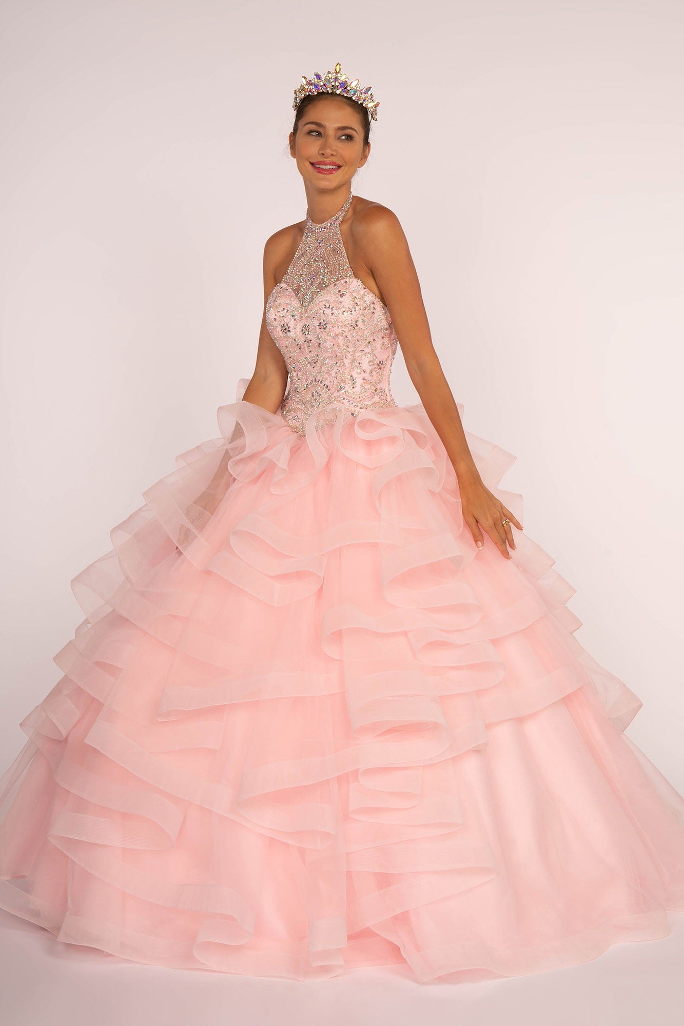 Beads and Jewel Embellished Halter Neck Quinceanera Dress GLGL2512