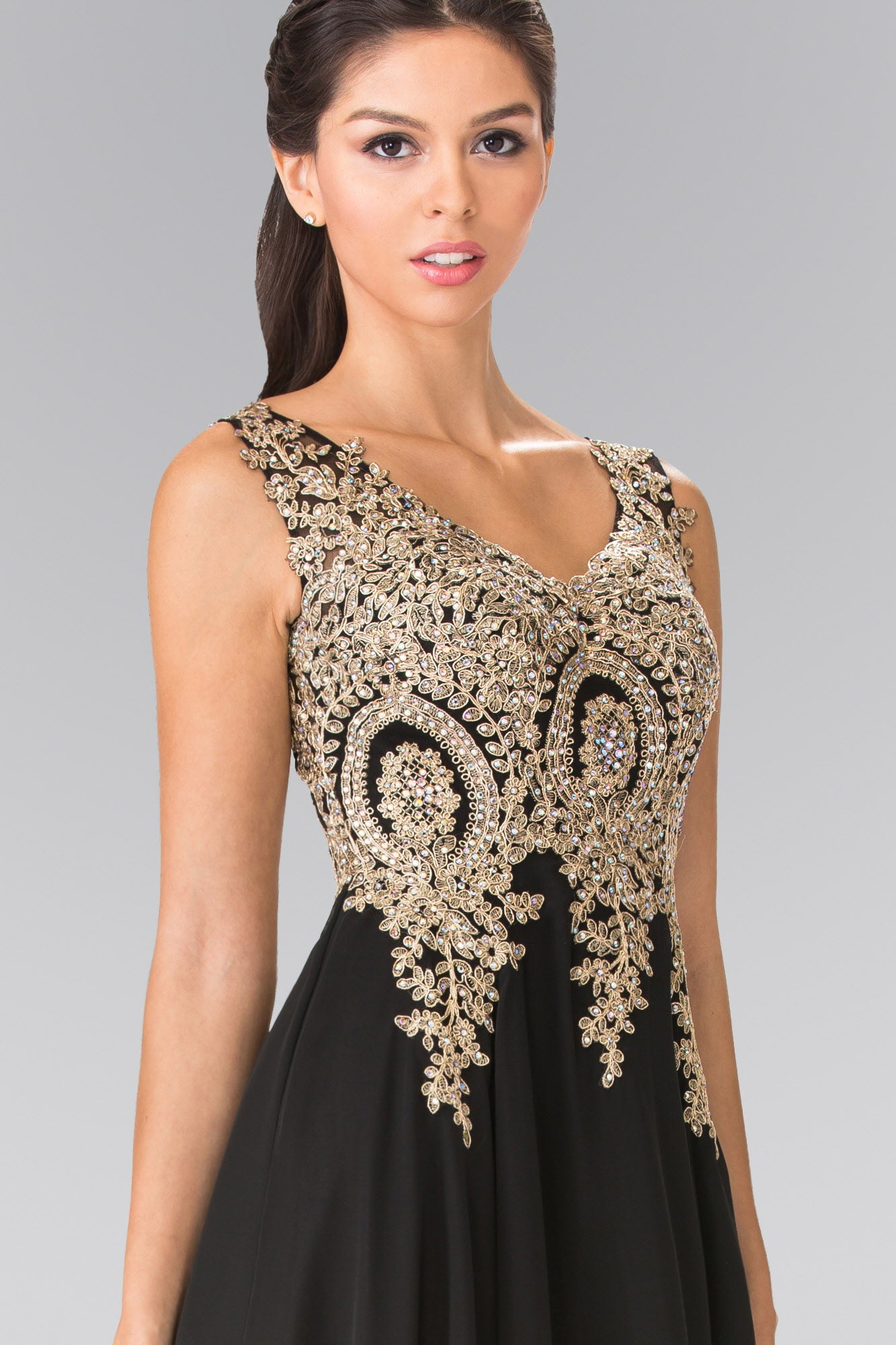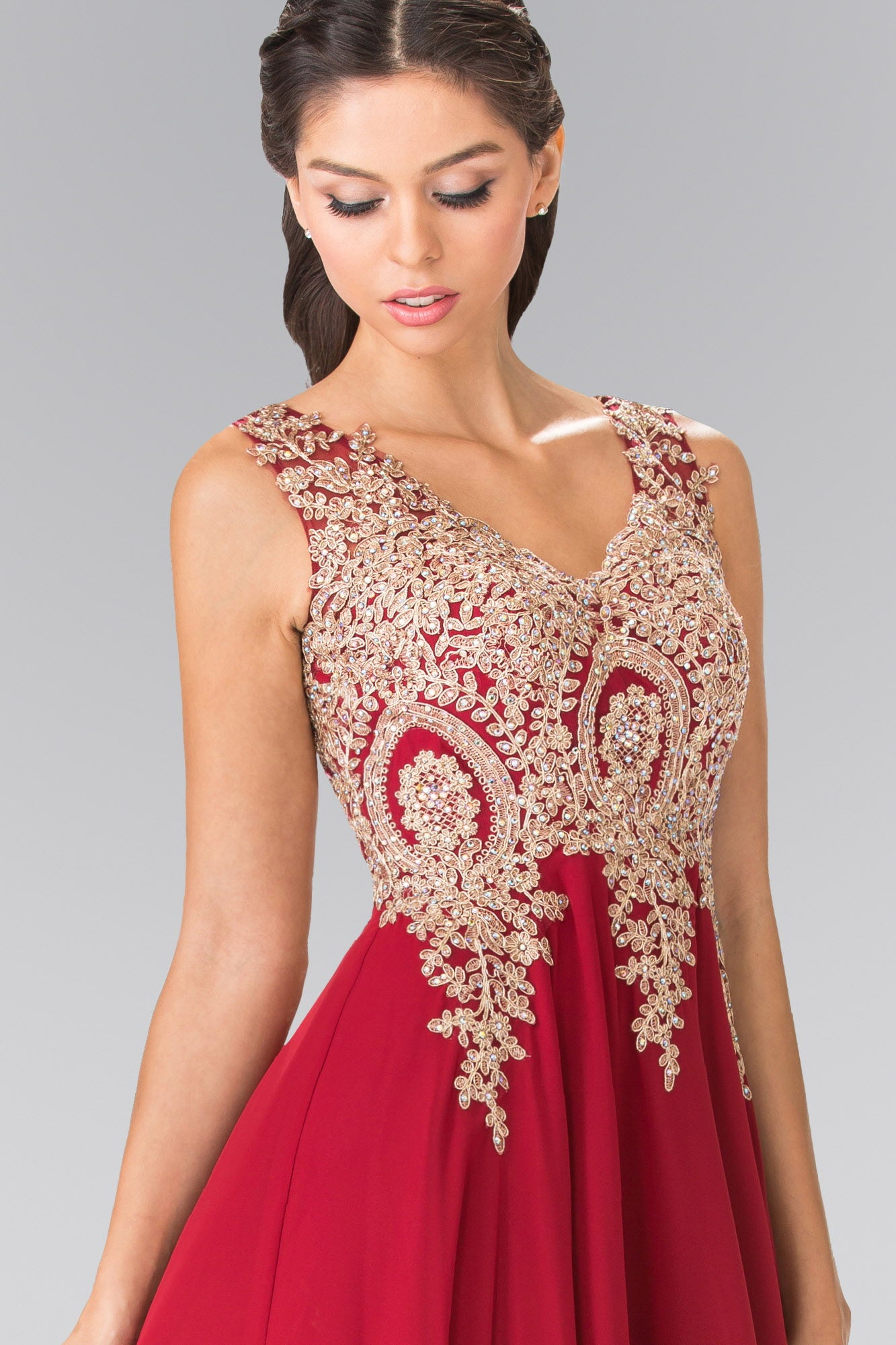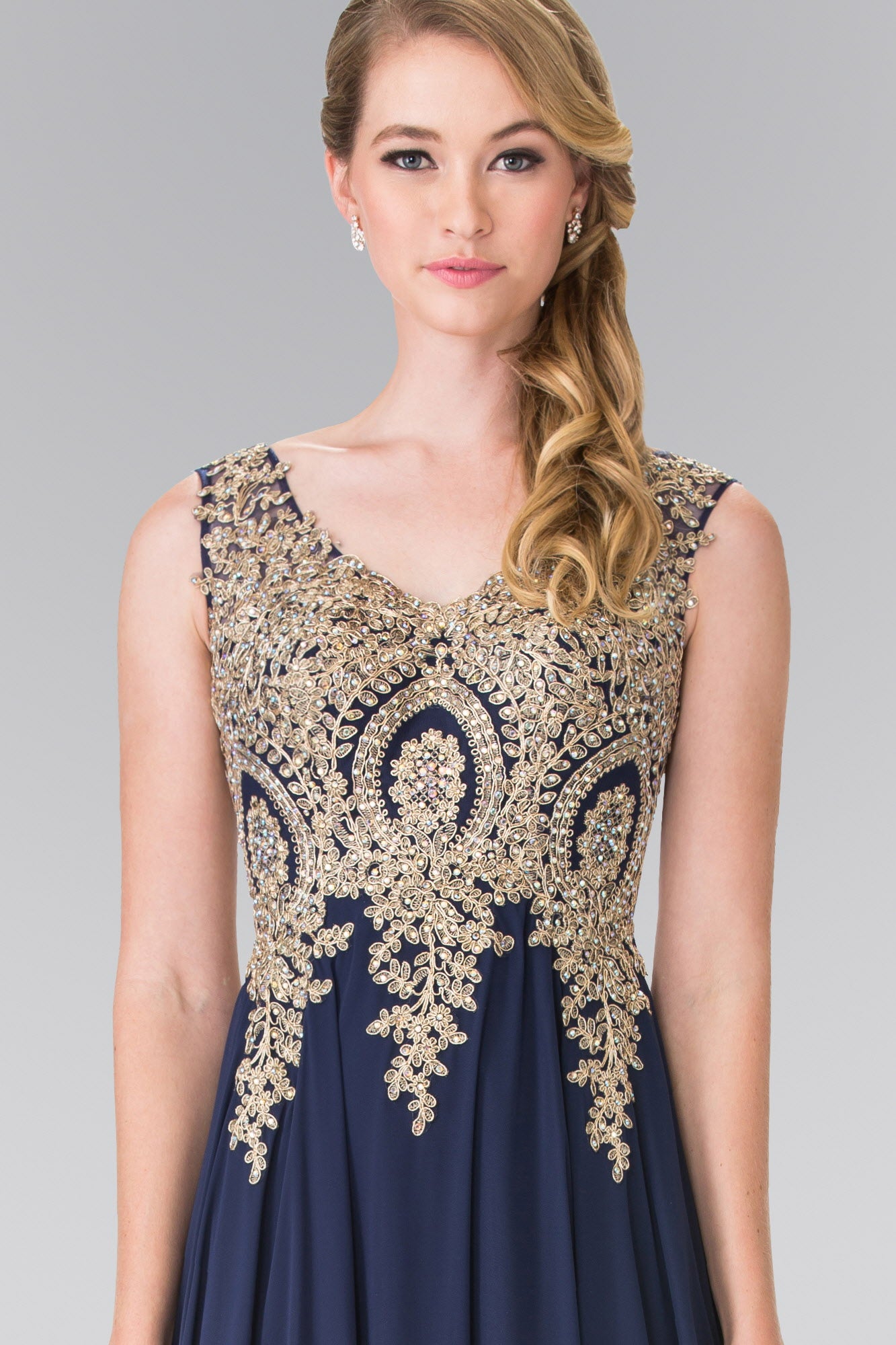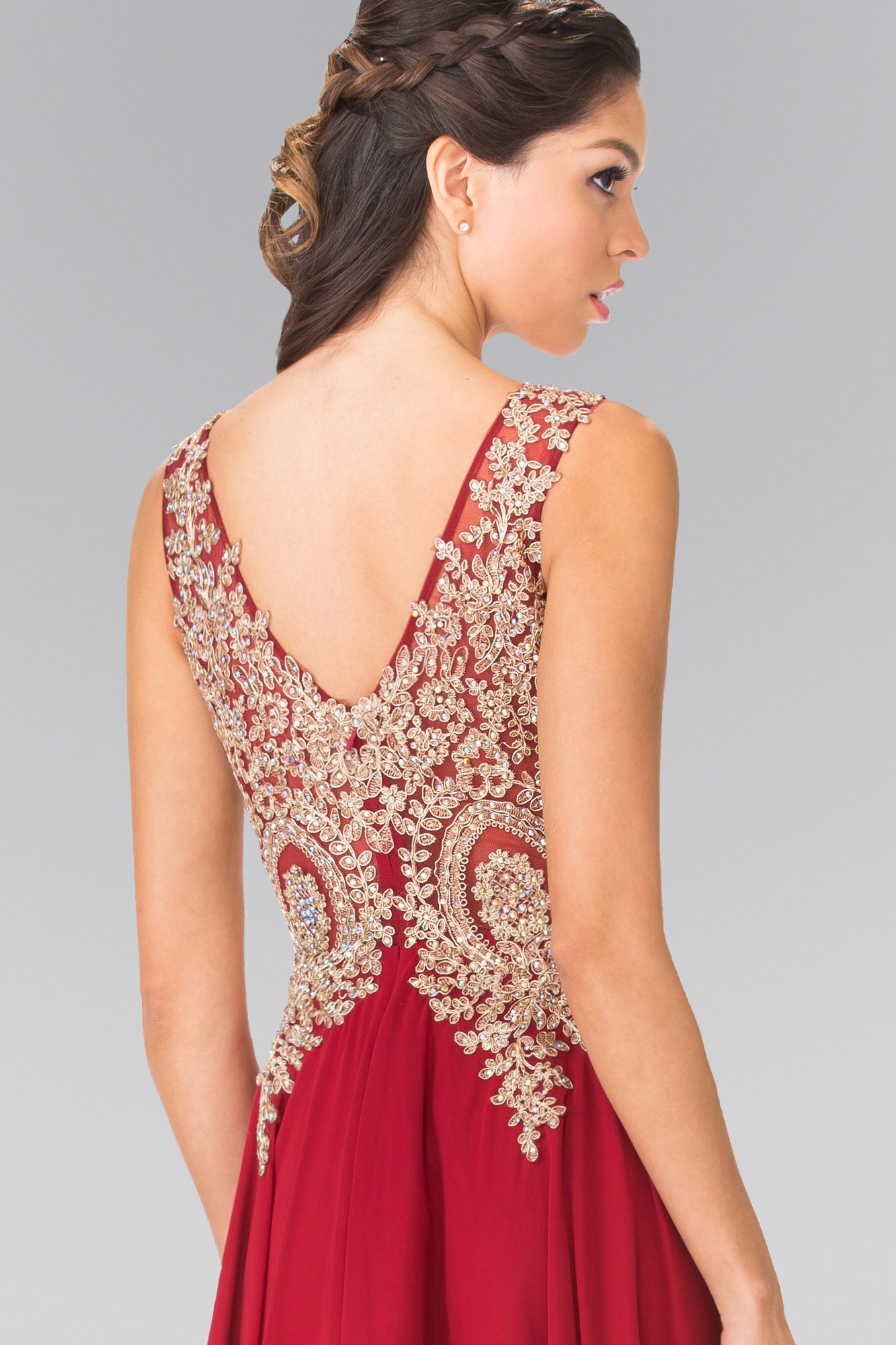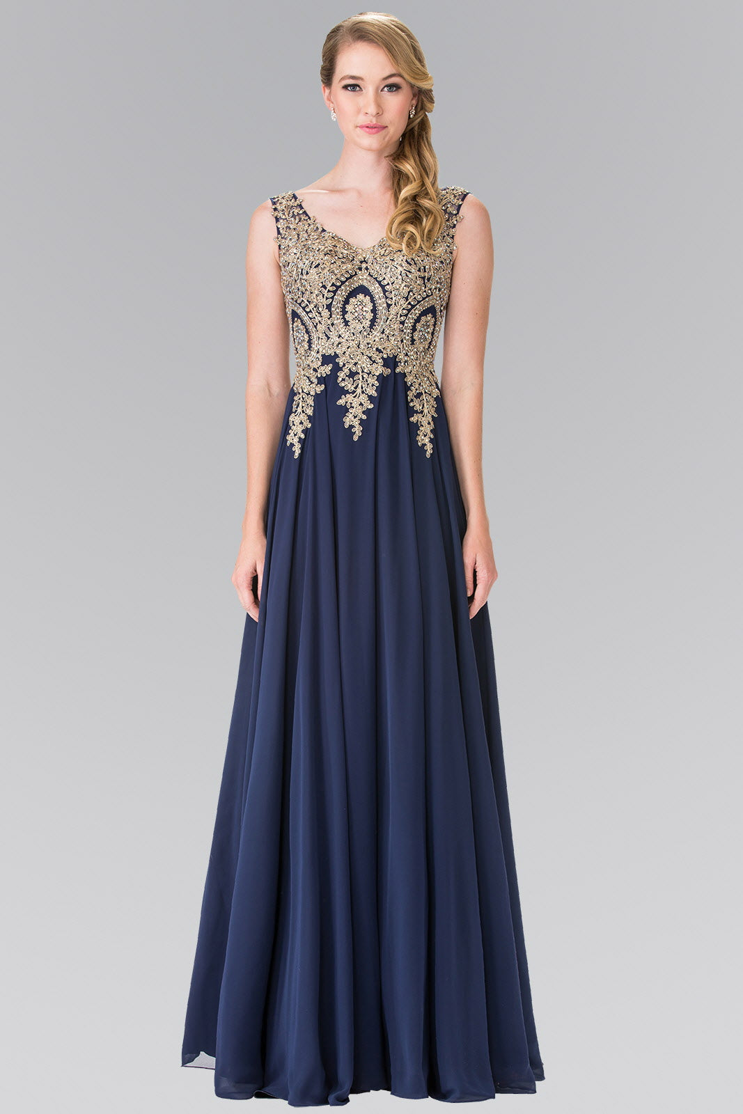 V-Neck Embroidered-Bodice Chiffon Long Dress GLGL2653