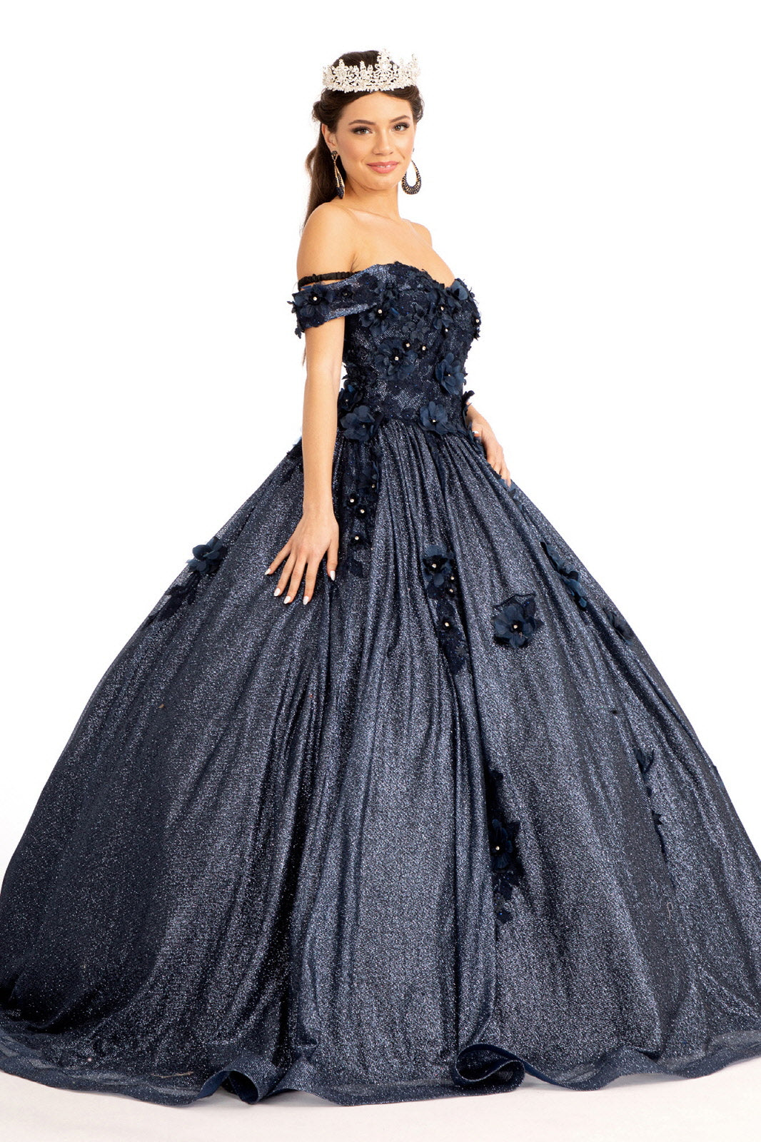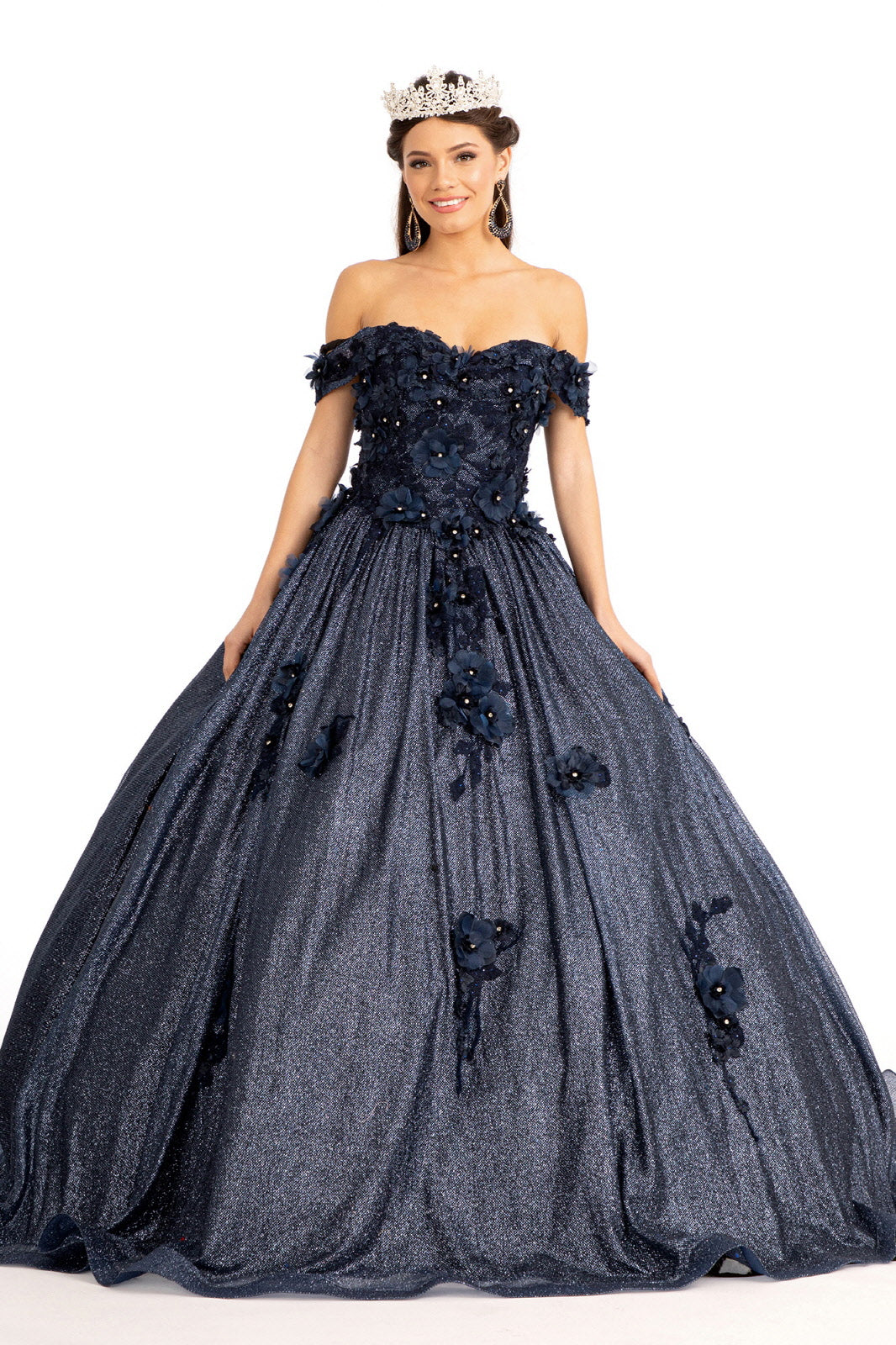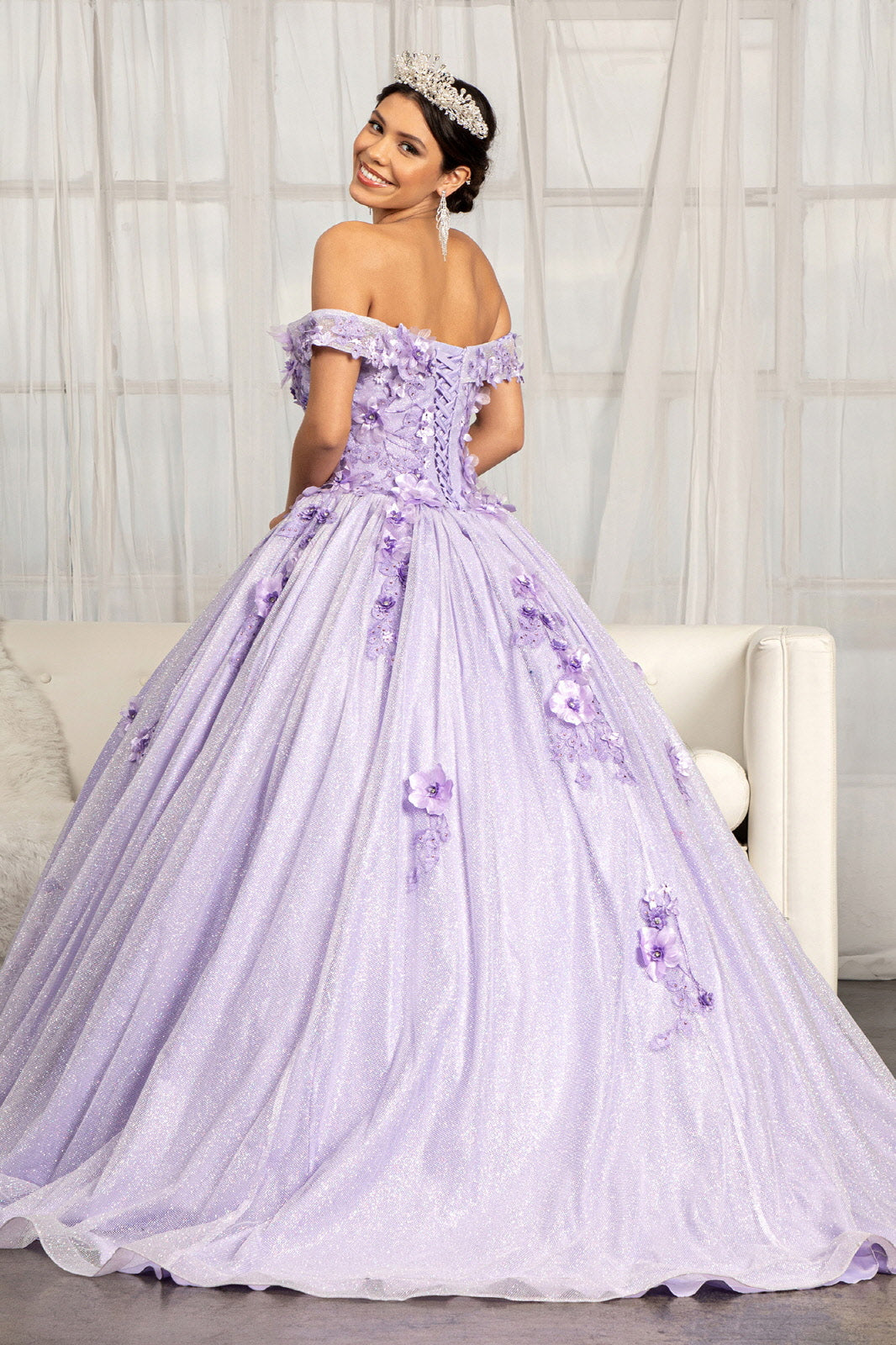3D Floral Applique and Jewel Embellished Glitter Mesh Quinceanera Dress GLGL1971
