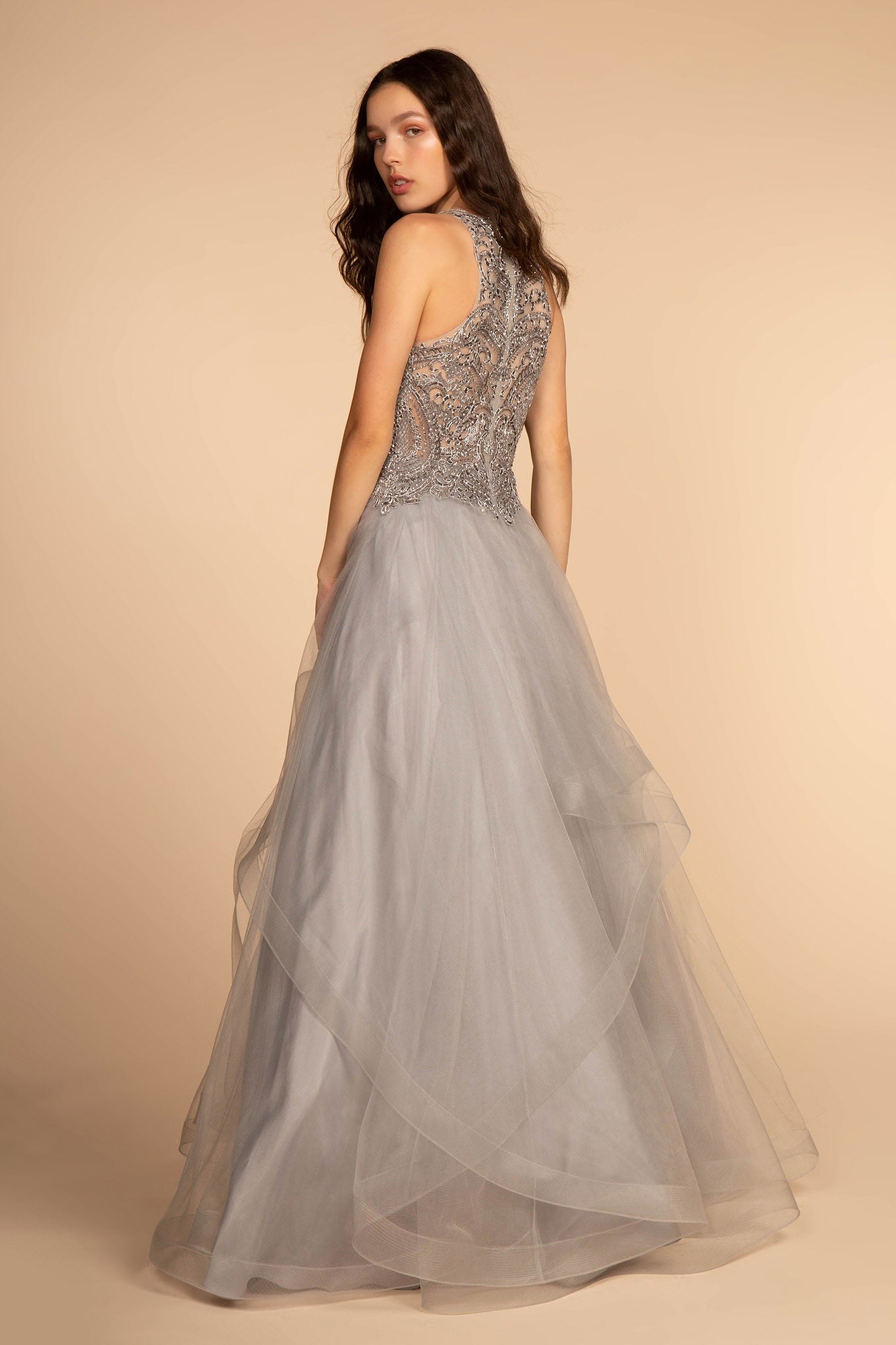 Embroidered Applique Bodice Tulle Long Dress GLGL2528