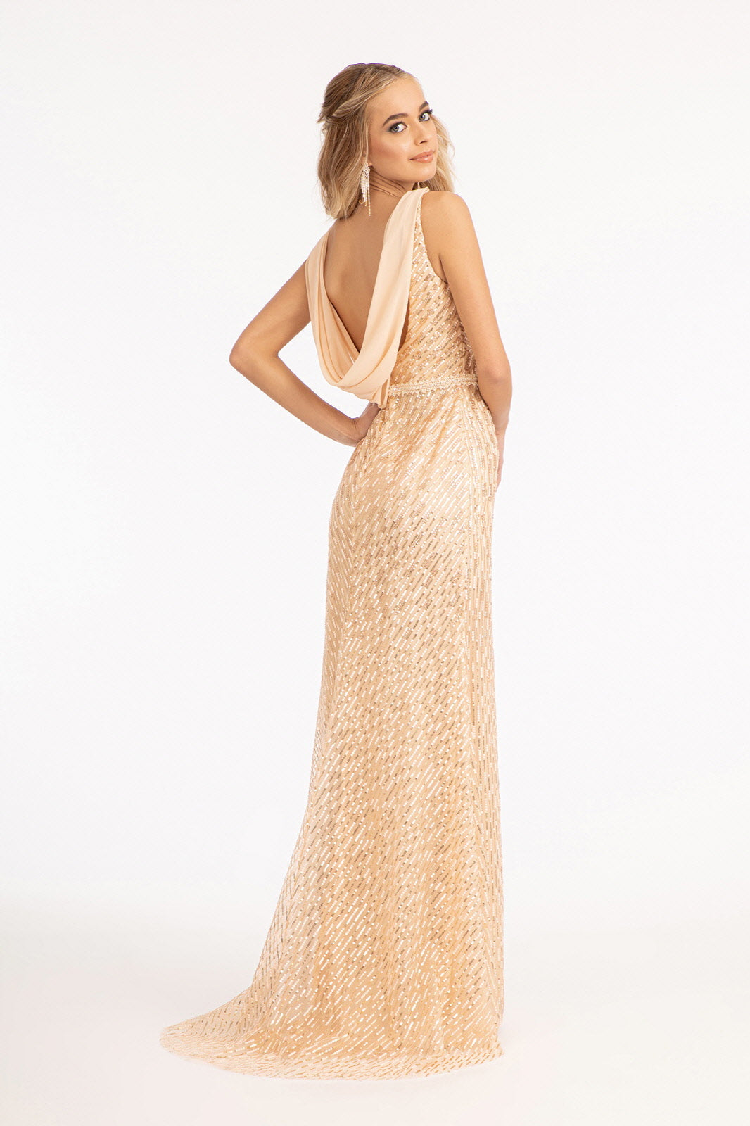 Embroidered Sequin Side Slit Long Prom & Wedding Dress