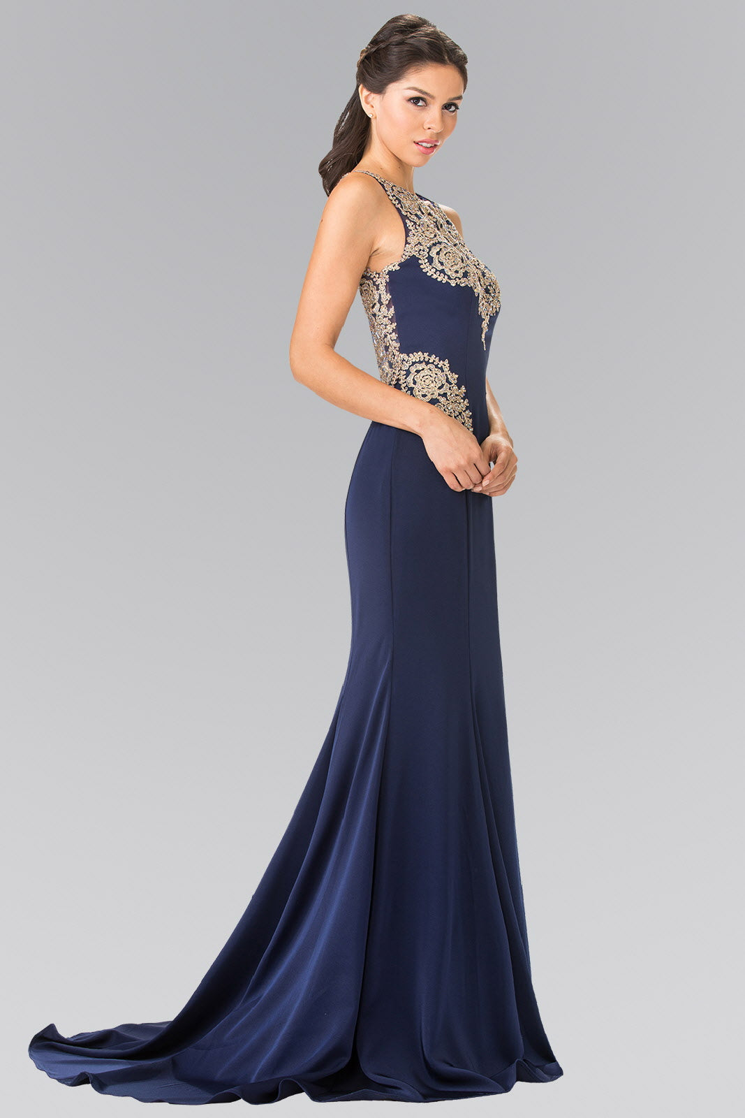 Embroidery Rome Jersey Long Dress with Open Back GLGL2312