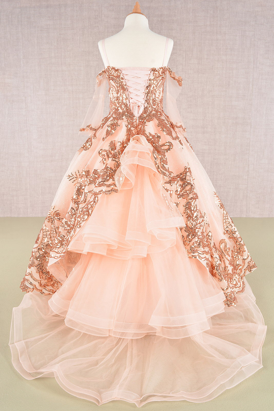 Glitter Print A-Line Dress Sequined Applique, Open Back, & Sequin Ballgown CDJ840