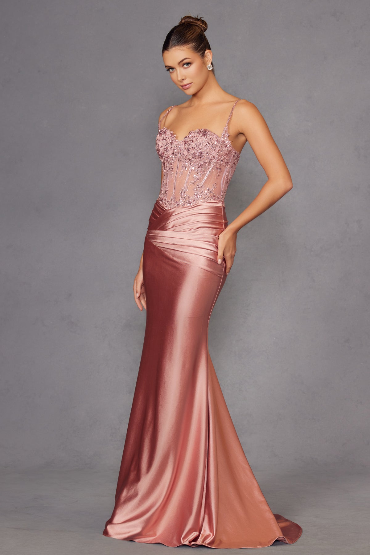 Mermaid Gown with Lace Corset Bodice & Spaghetti Straps