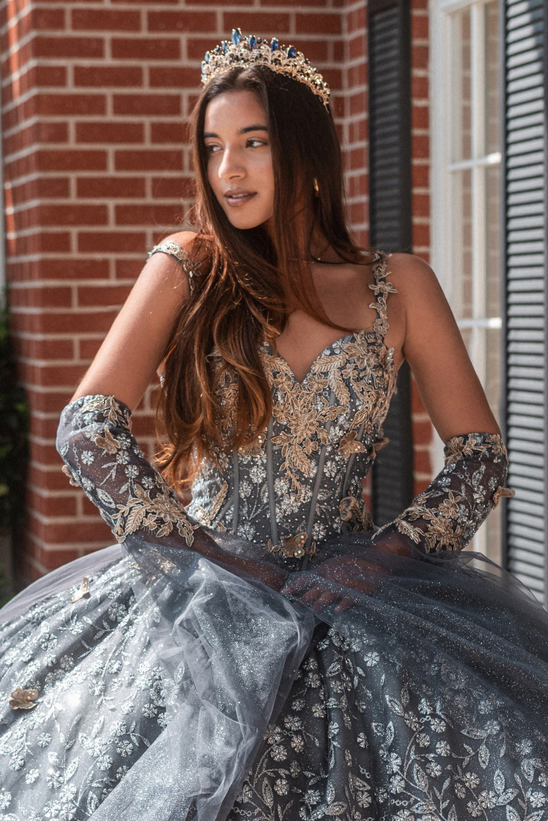 Metallic Embroidery Sheer Bodice Jewel Mesh Ball Gown GLGL3477