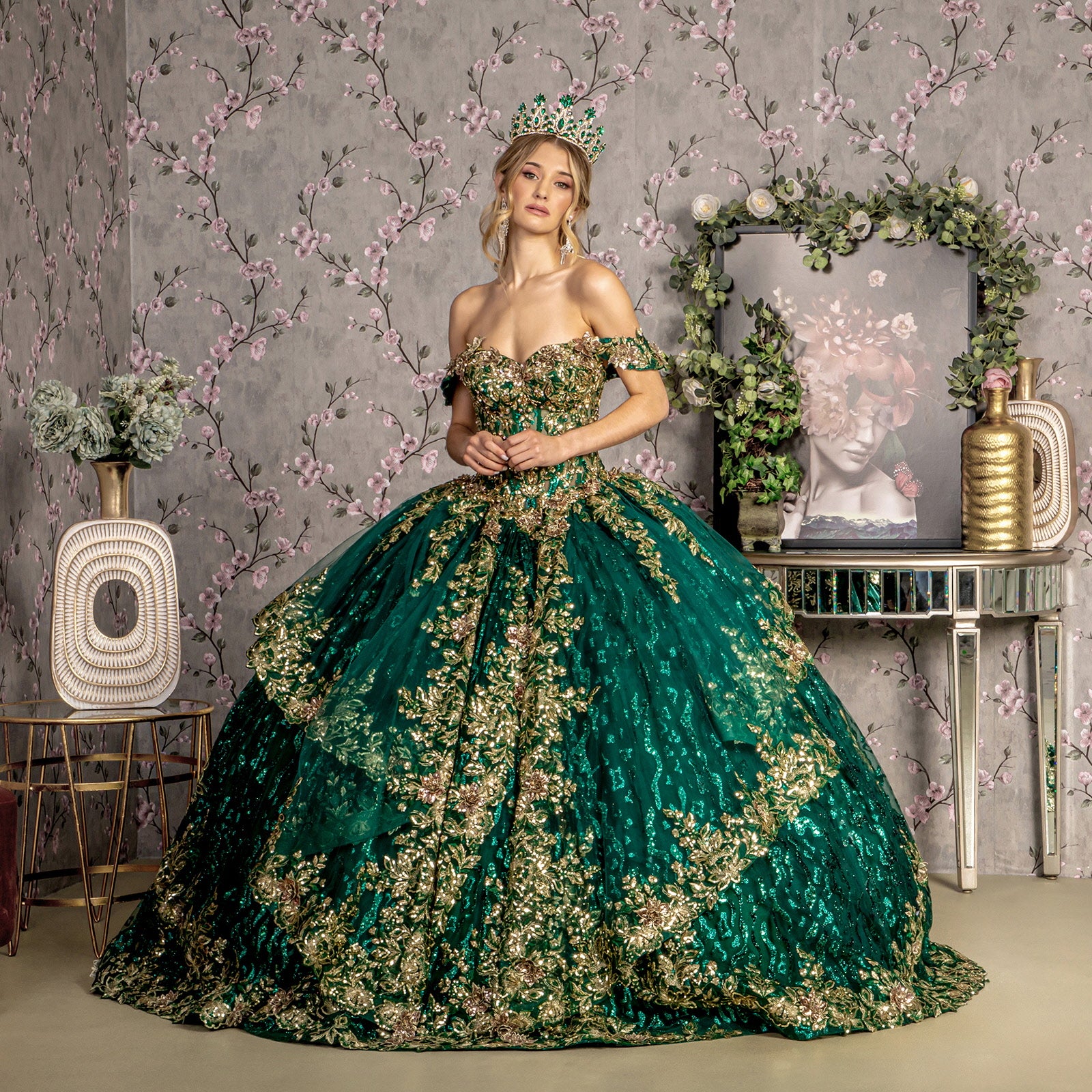 METALLIC OFF THE SHOULDER BALL GOWN CDCD210C