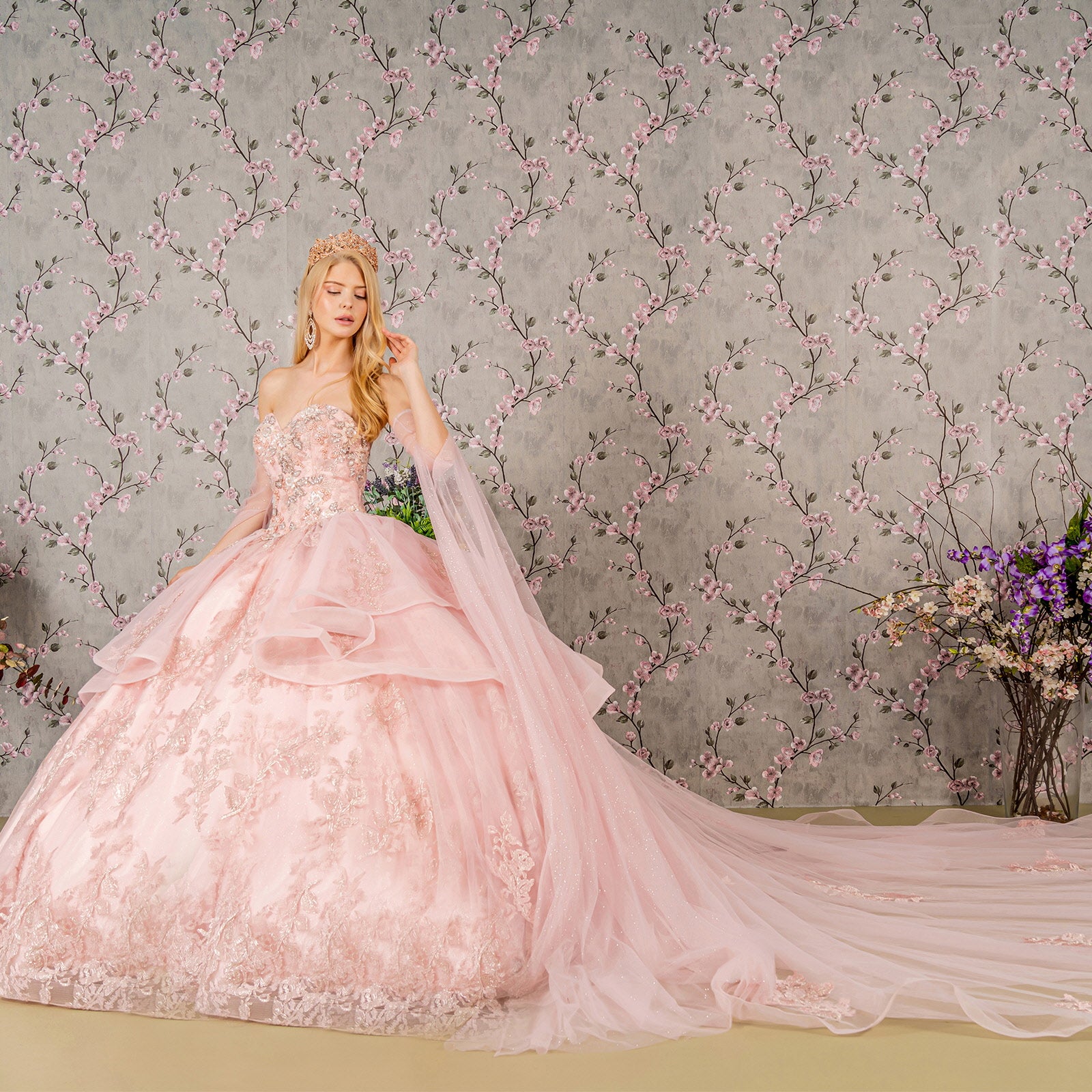 Metallic Sequin Glitter Mesh Ball Gown Long Sheer Side Sleeves GLGL3317