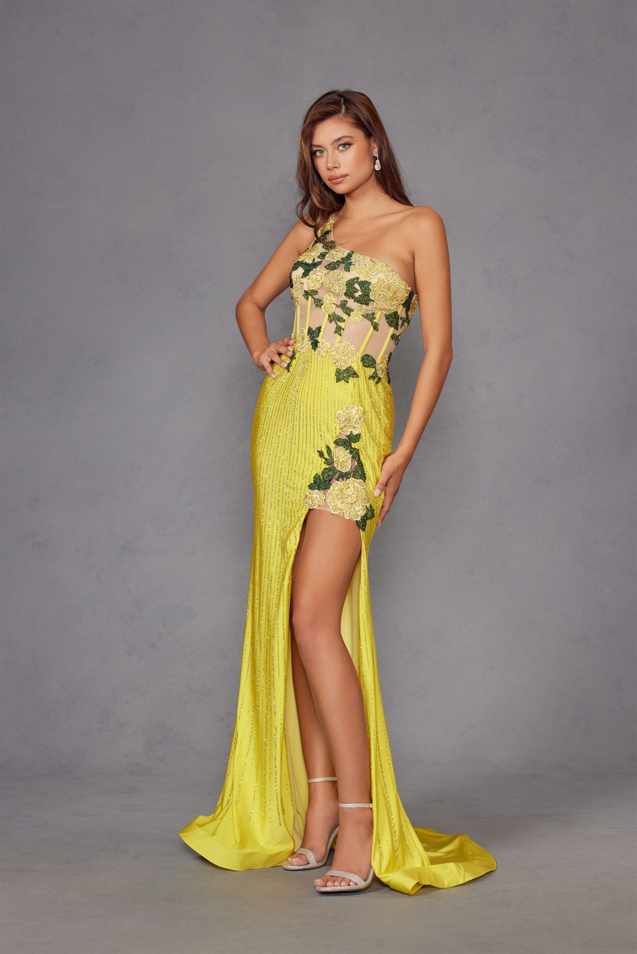 ONE SHOULDER SEQUIN GOWN CDCD884