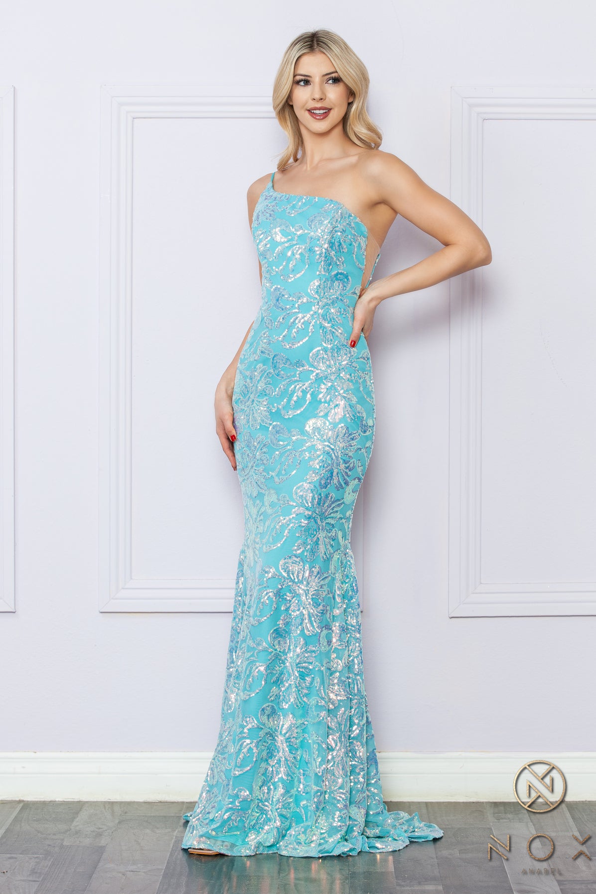 ONE SHOULDER SEQUIN EVENING GOWN CDCH077
