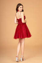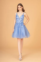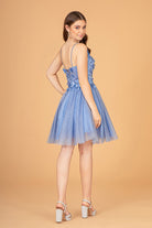 Mesh Babydoll Short Dress with 3-D Appliques and Corset Back GLGS3090