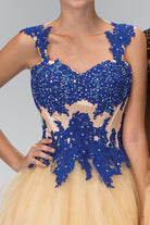 Rolled Hem Short Tulle Dress with Floral Lace Embellished Bodice GLGS2133