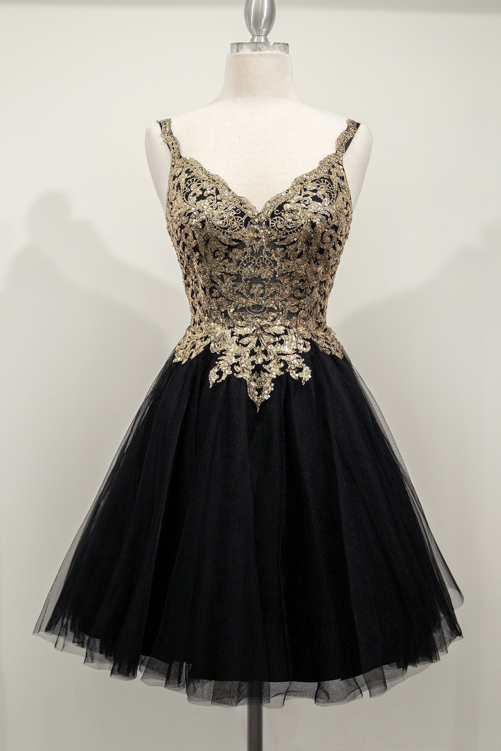 This A-line mini dress features an embellished tulle bodice with shimmering metallic floral motif lace appliqué, corseted for shape and support. The elegant v-neckline showcases your décolletage. The flattering basque waistline is accentuated by a gathered and layered tulle skirt.