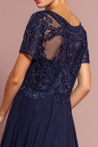 Beaded Bodice Cap Sleeve A-Line Chiffon Dress GLGL2683