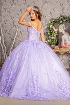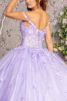 3-D Flower Jewel Glitter Sheer Bodice Mesh Ball Gown GLGL3302