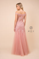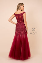FORMAL SHEATH OFF SHOULDER LONG DRESS W/ V-NECKLINE CAP SLEEVES & TRUMPET SKIRT