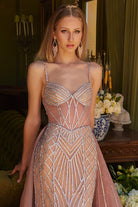 Sheer Corset Glitter Gown with Detachable Overskirt Mauve
