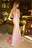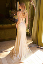 Gold Satin Corset Gown with Rhinestone Straps and Leg Slit