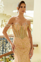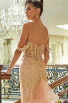 Sequin Mermaid Evening Gown | Strapless Corset Formal Dress with Tulle Train GL3563