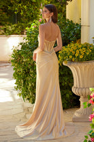 Champagne Corset Gown with Rhinestone Bust and Thigh Slit