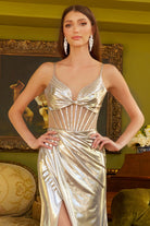 The sleek spaghetti straps and deep V-neckline add a sultry flair, while the ruched hip detailing and high front slit offer a bold, red-carpet-ready edge. Perfect for prom, pageants, galas, or any night where all eyes should be on you.