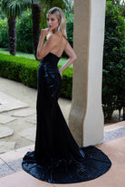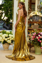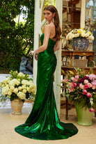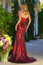 Turn heads in this dazzling burgundy metallic gown, designed to highlight your silhouette and make a bold entrance. Featuring a strapless sweetheart neckline with a daring sheer cutout, this dress radiates confidence and glamour. The ruched waist enhances your curves, while the thigh-high slit adds a sultry touch, perfect for proms, red carpet events, or elegant evening affairs. Crafted from luxe metallic fabric with a lustrous finish, this gown glows under the lights and offers timeless appeal with a modern edge.