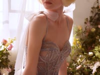 The gown’s soft pastel tones and subtle sparkle create a truly ethereal look, while the adjustable straps add comfort and security for dancing the night away.