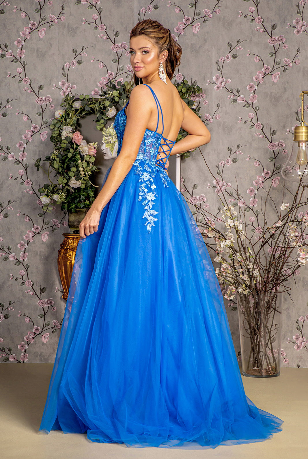 - Intricate lace details