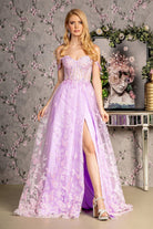 Bead Strapless Mesh A-line Long Dress Detachable Sleeves GLGL3206