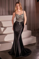 Crystal Embellished Corset Mermaid Gown with Draped Satin Skirt