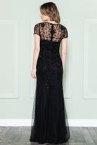 Elegant Black Beaded Mesh Evening Gown with Cap Sleeves